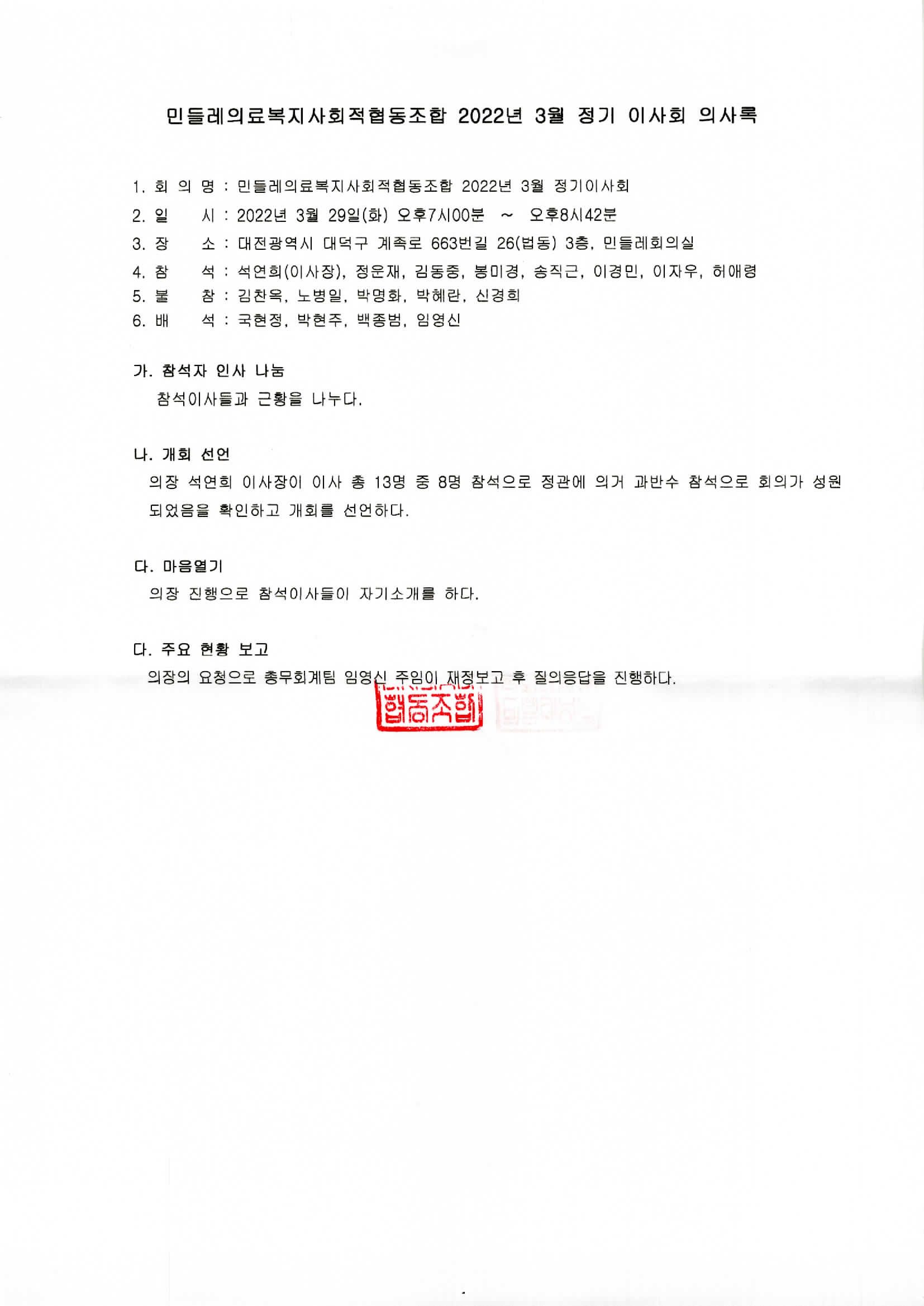 [2022-03] 정기이사회 결과보고