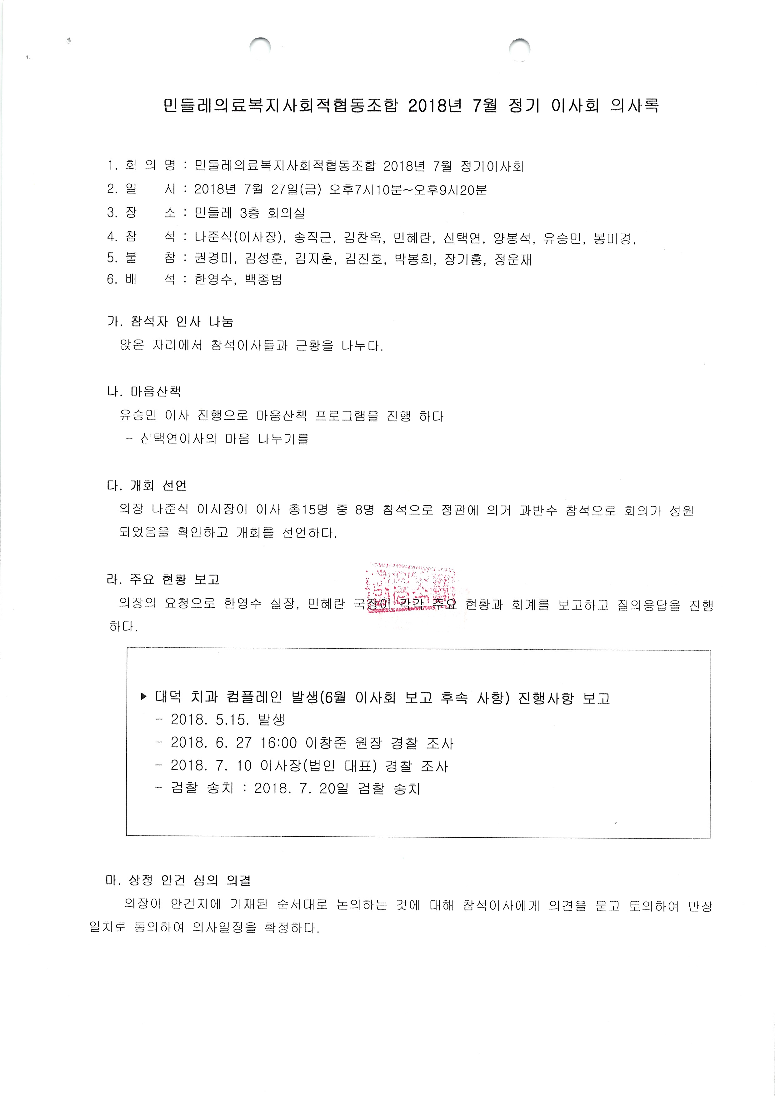 [2018-7] 정기이사회 결과보고