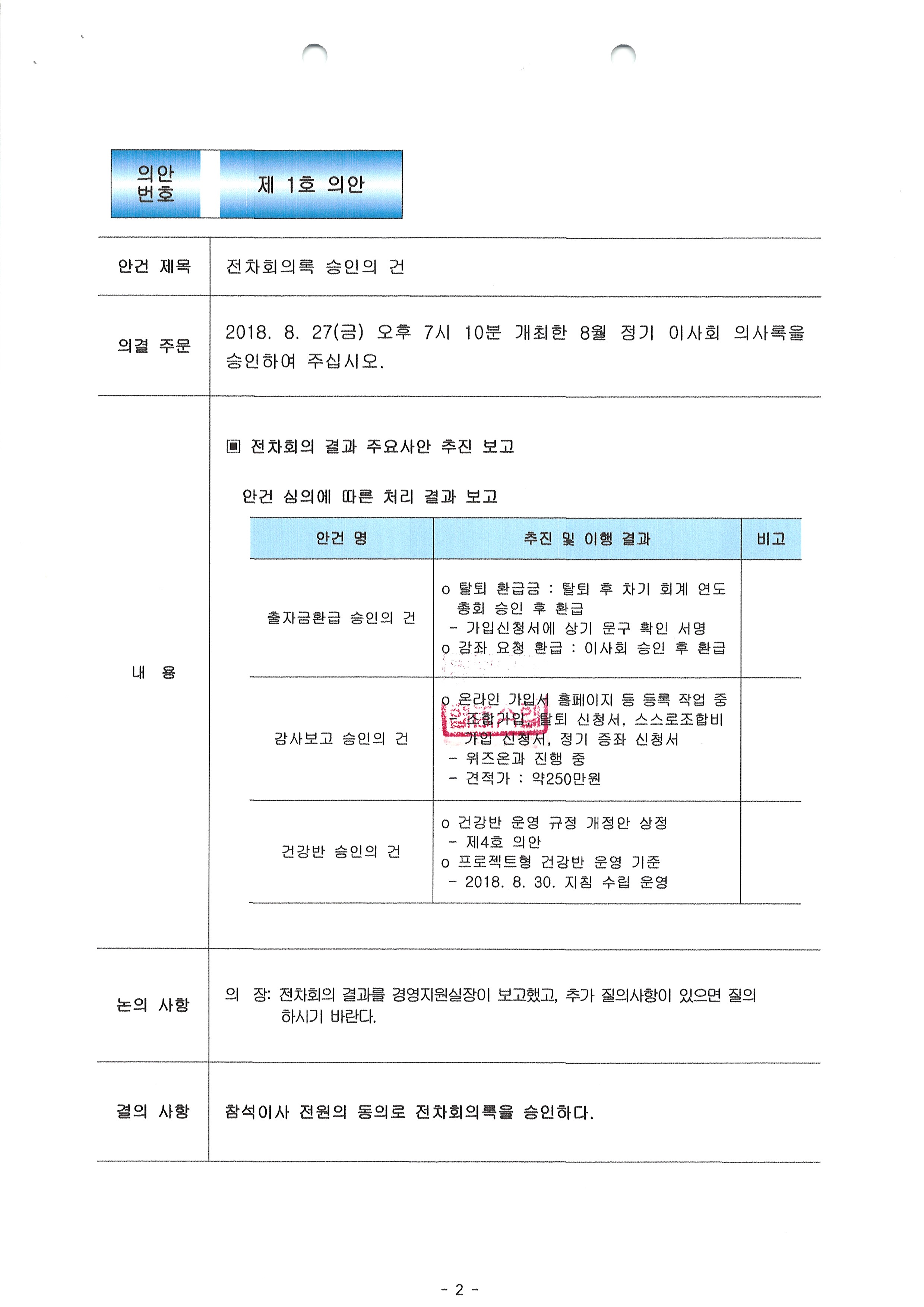 [2018-8] 정기이사회 결과보고
