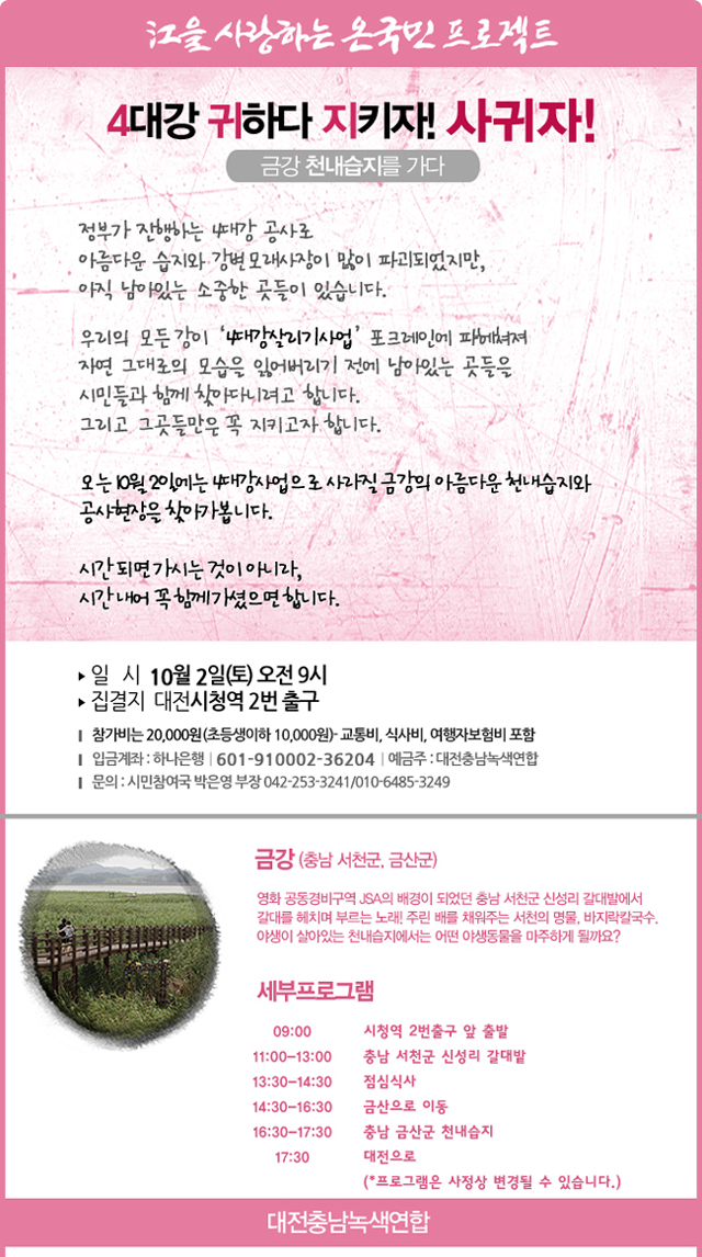 사.귀.자 현장프로젝트 - 금강편 참가자 모집 상세내용
