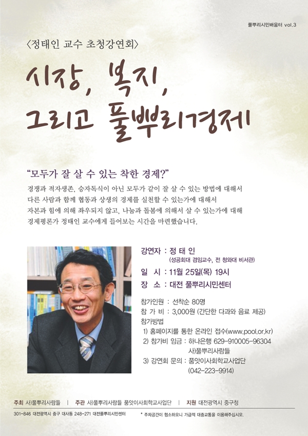 | 제목 | [풀뿌리시민배움터] 정태인 초청 강연회 |