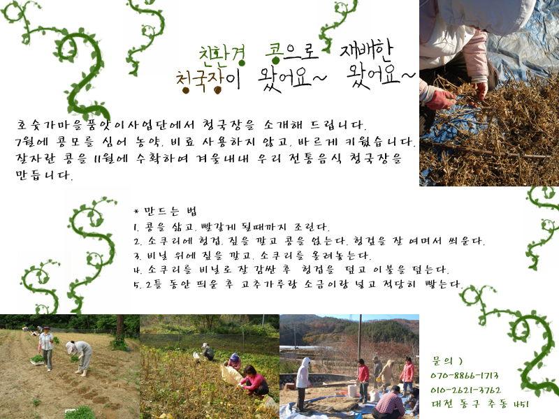 제목 친환경 콩으로 만든 청국장 판매!!