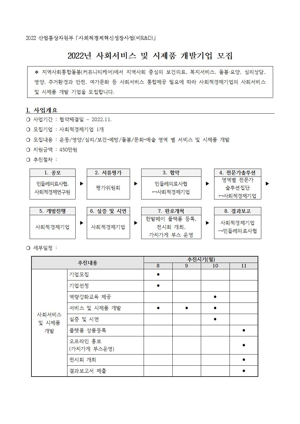 [마감] 2022 사회서비스 및 시제품 개발기업 모집