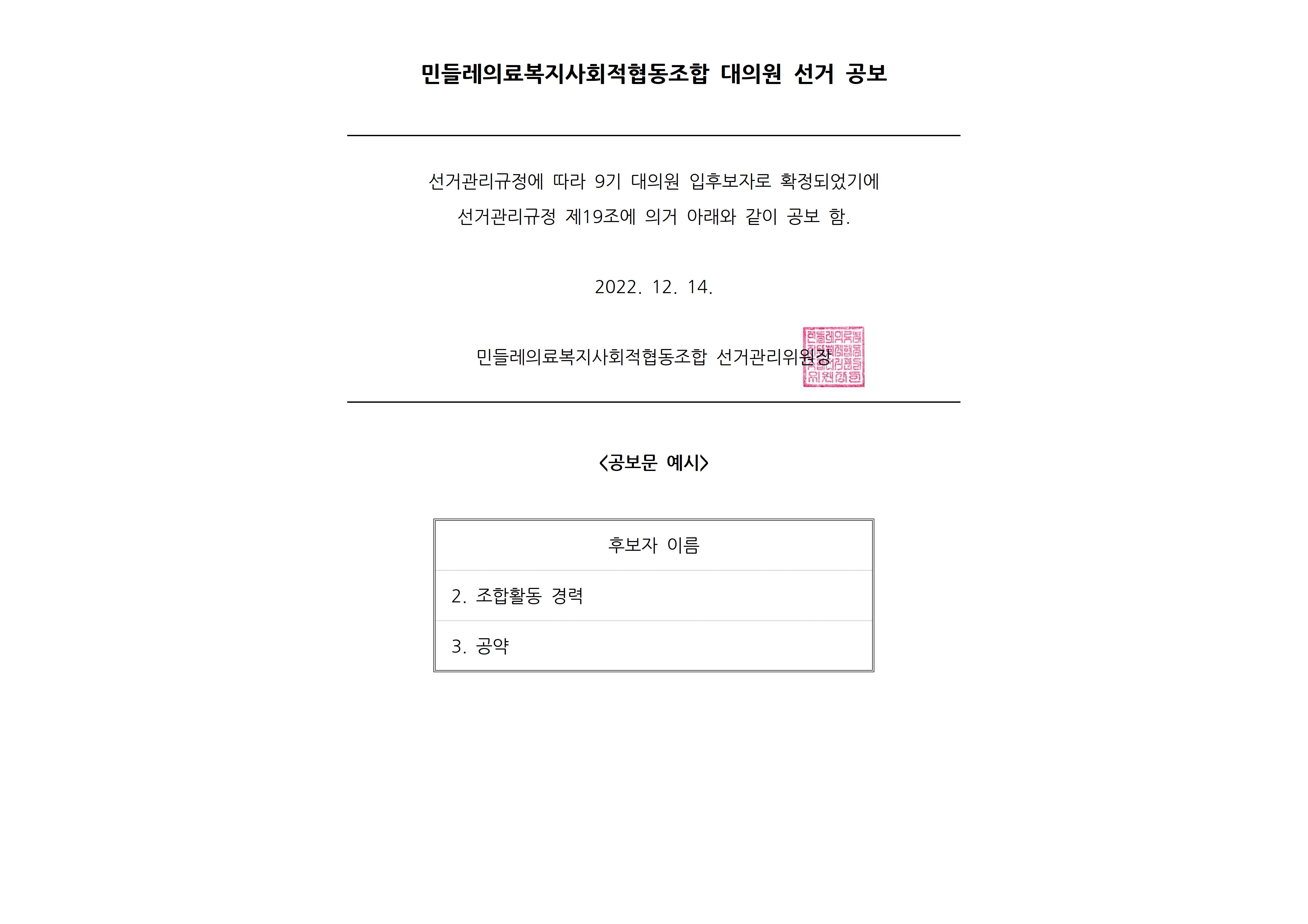 제9기 대의원 입후보자 선거구별 공보