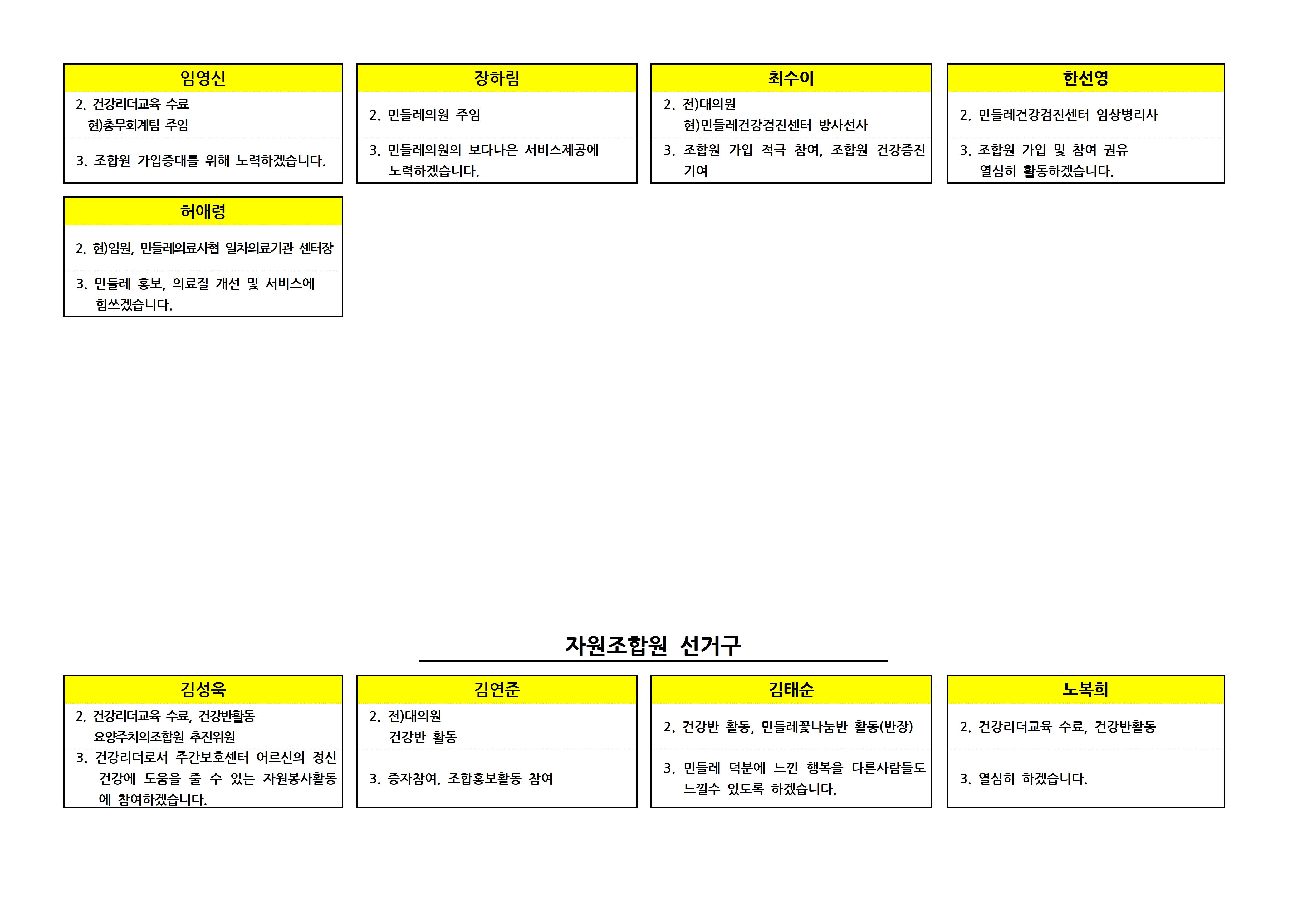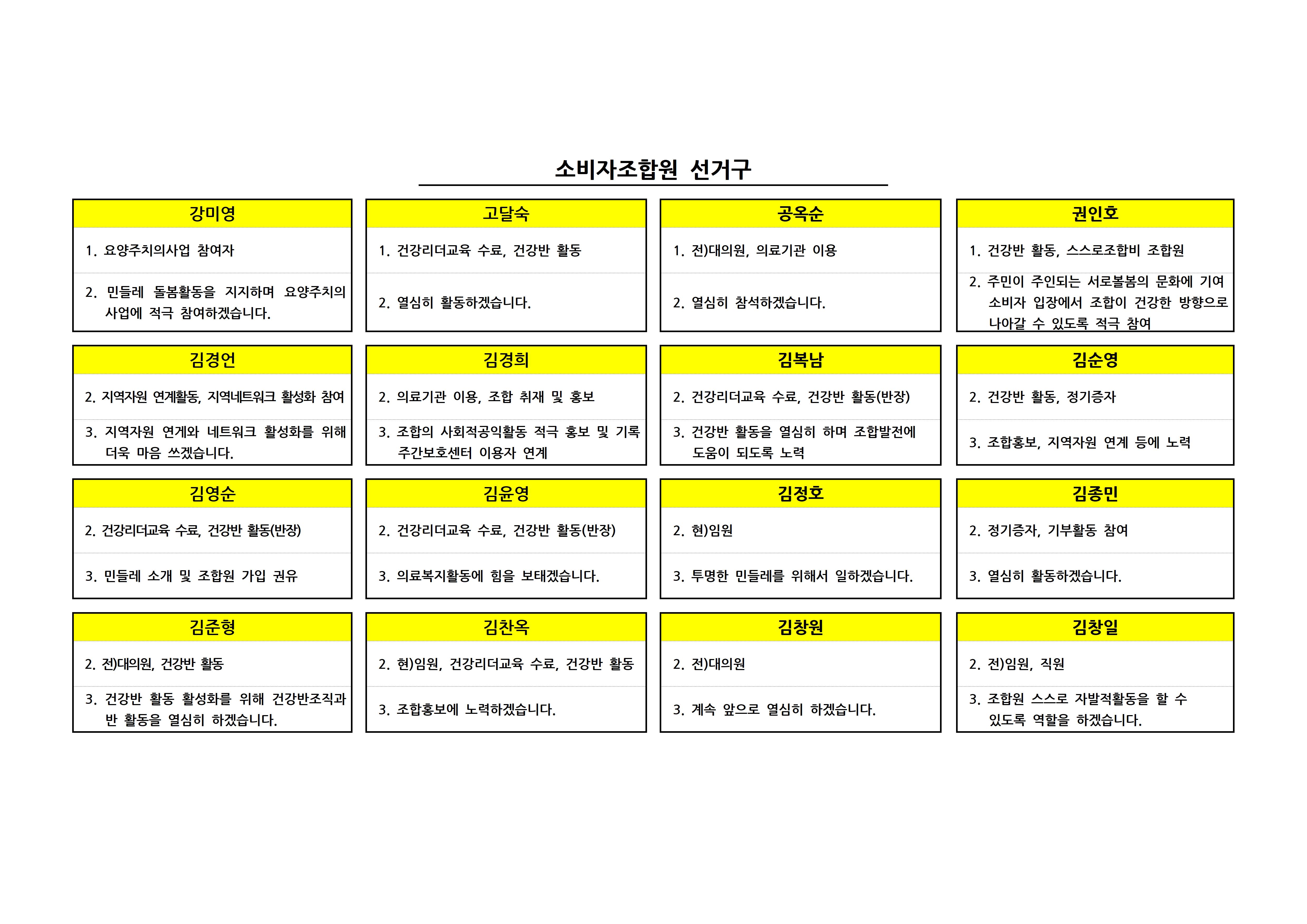 제9기 대의원 입후보자 선거구별 공보 상세내용