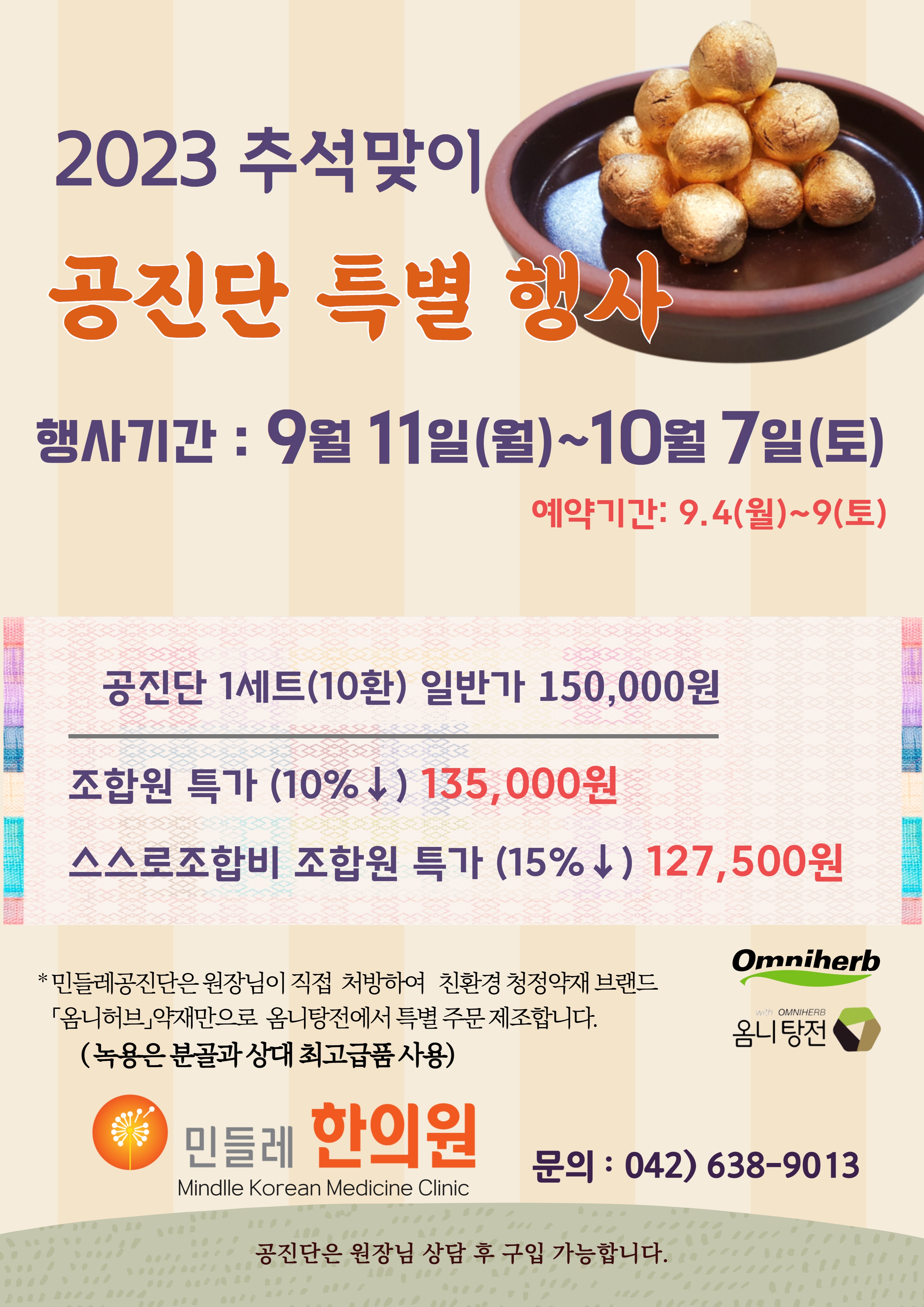 [민들레한의원] 추석맞이 공진단 할인행사 상세내용