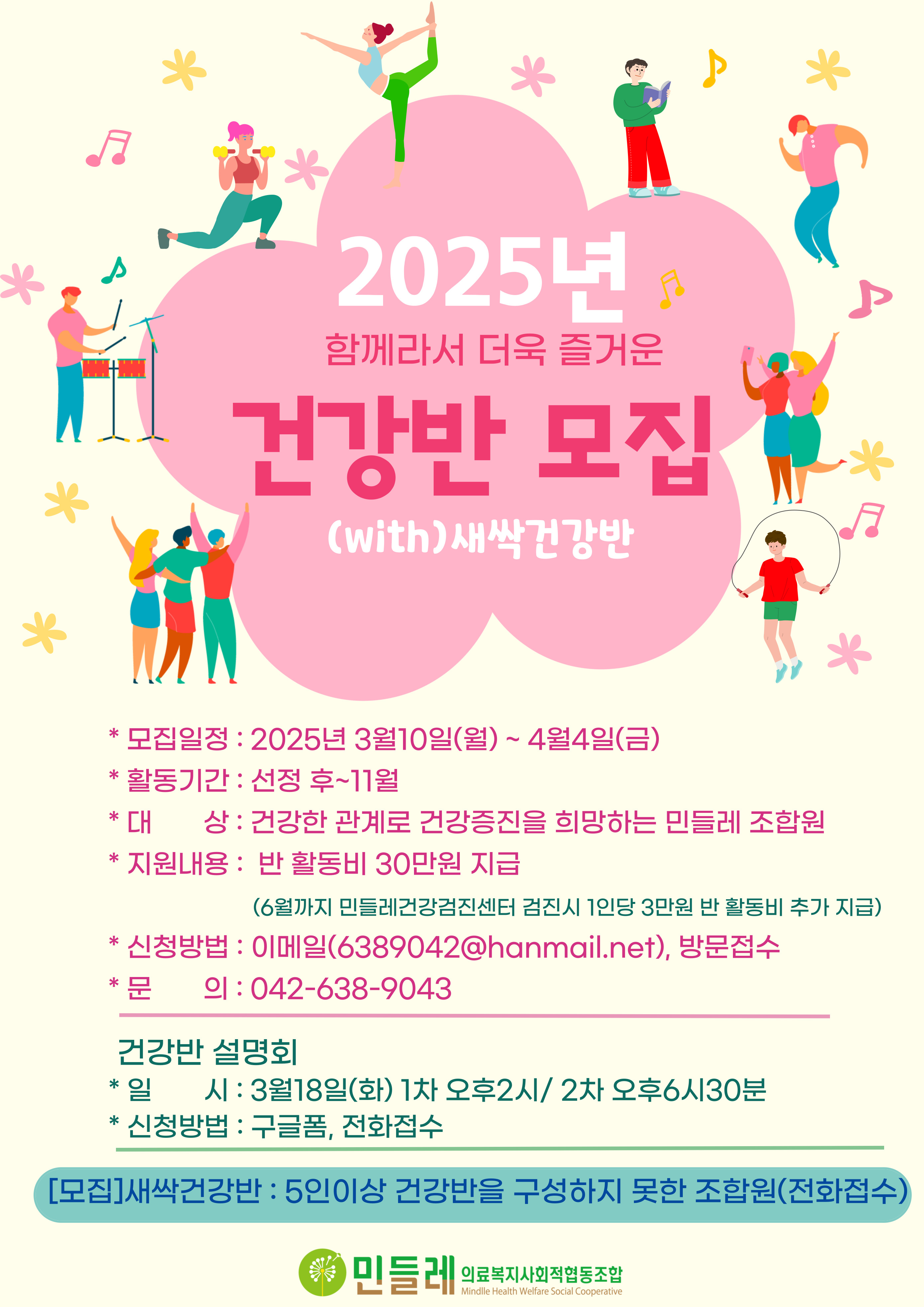 | 제목 | [마감] 2025년 건강반 모집 공고 |