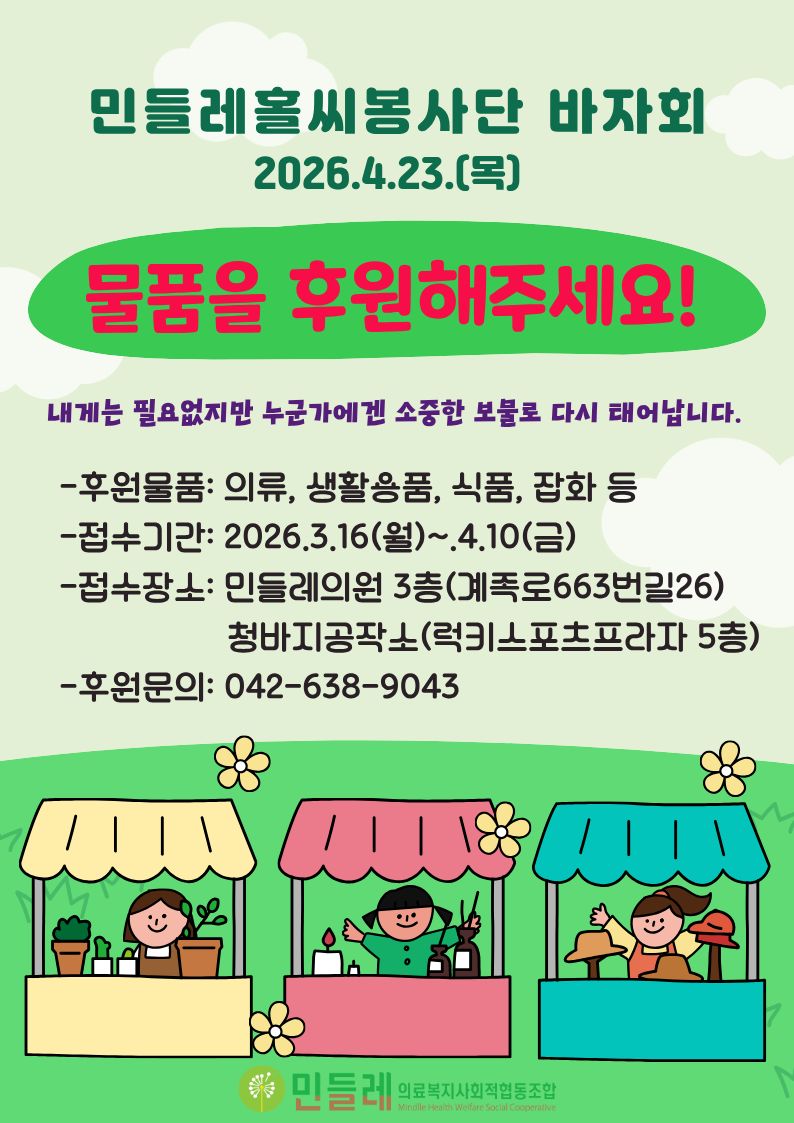 작성자 민들레의료복지사회적협동조합(mindlle) 작성일 2026-03-16 조회수 800