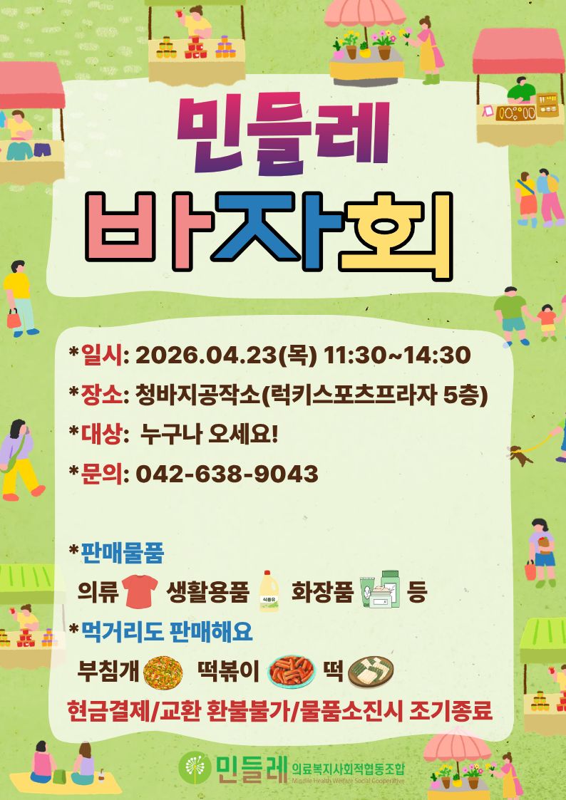 작성자 민들레의료복지사회적협동조합(mindlle) 작성일 2026-04-09 조회수 365