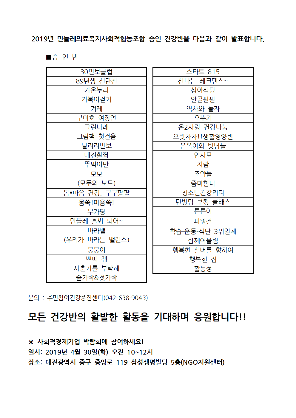 | 작성자 | 민들레의료복지사회적협동조합(mindlle) | 작성일 | 2019-04-05 | 조회수 | 35662 |