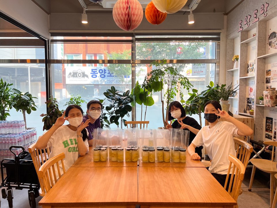 더운 여름 기운내시라고 주변 장애인 가구에 시원한 레몬청을 전달하고, 코로나19로 수고하는 조합 의료진과 직원들에게 감사의 뜻으로 직접 쿠키를 만들어 왔답니다.