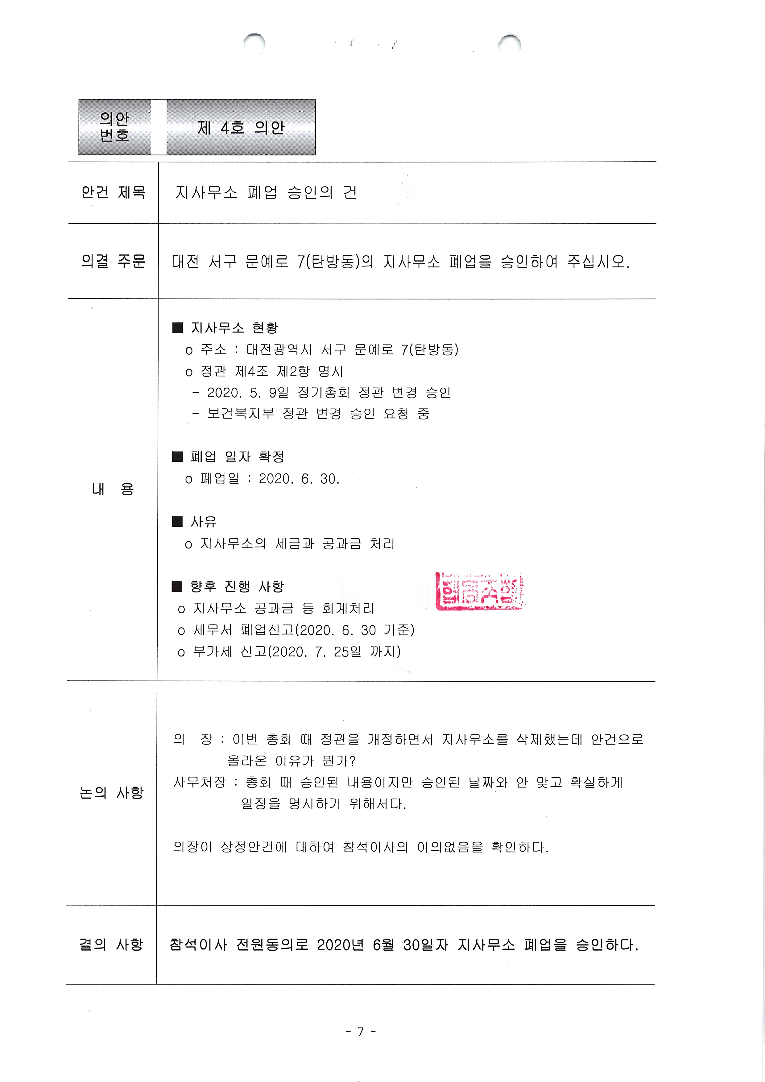 [2020-06] 임시이사회 결과보고