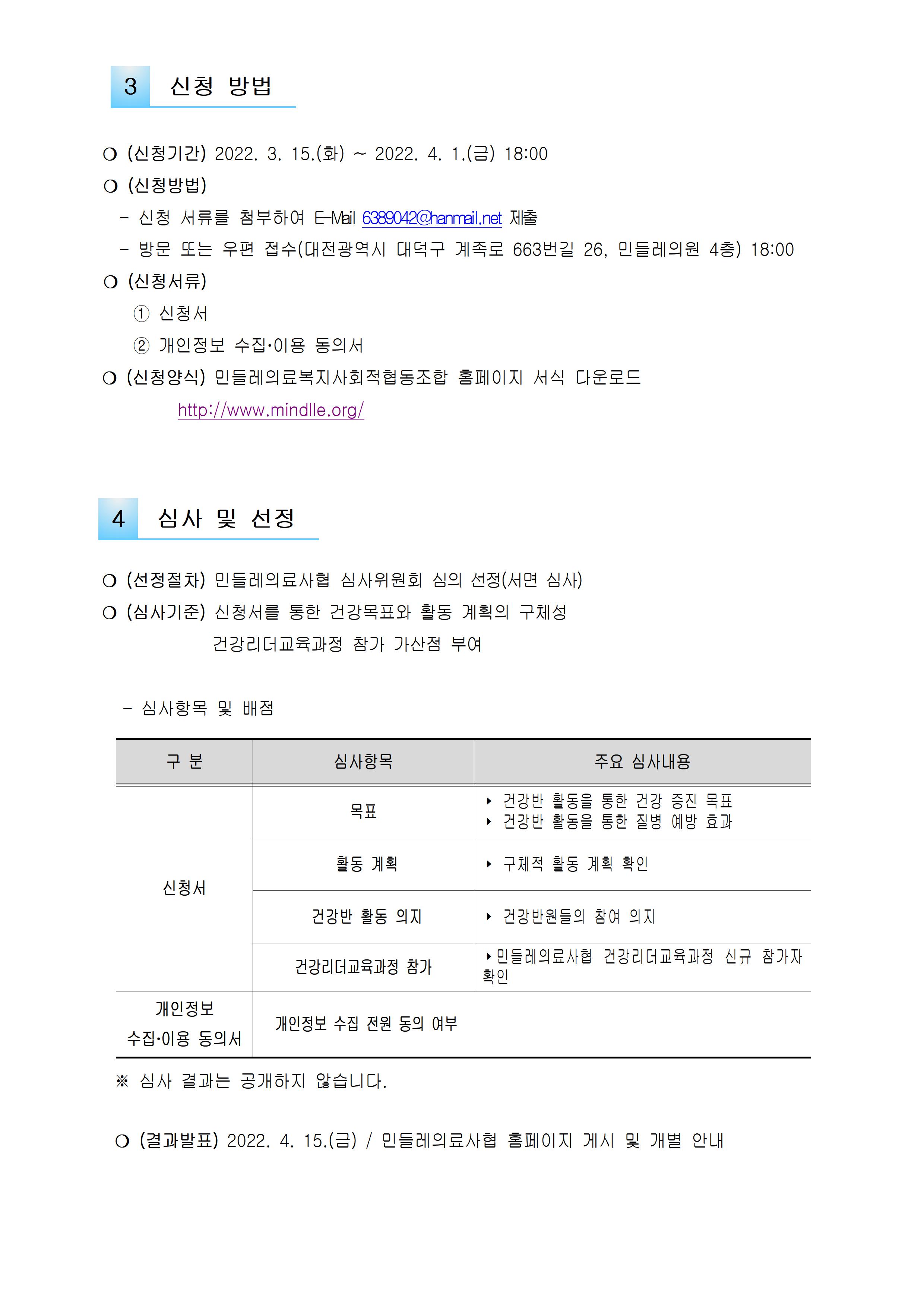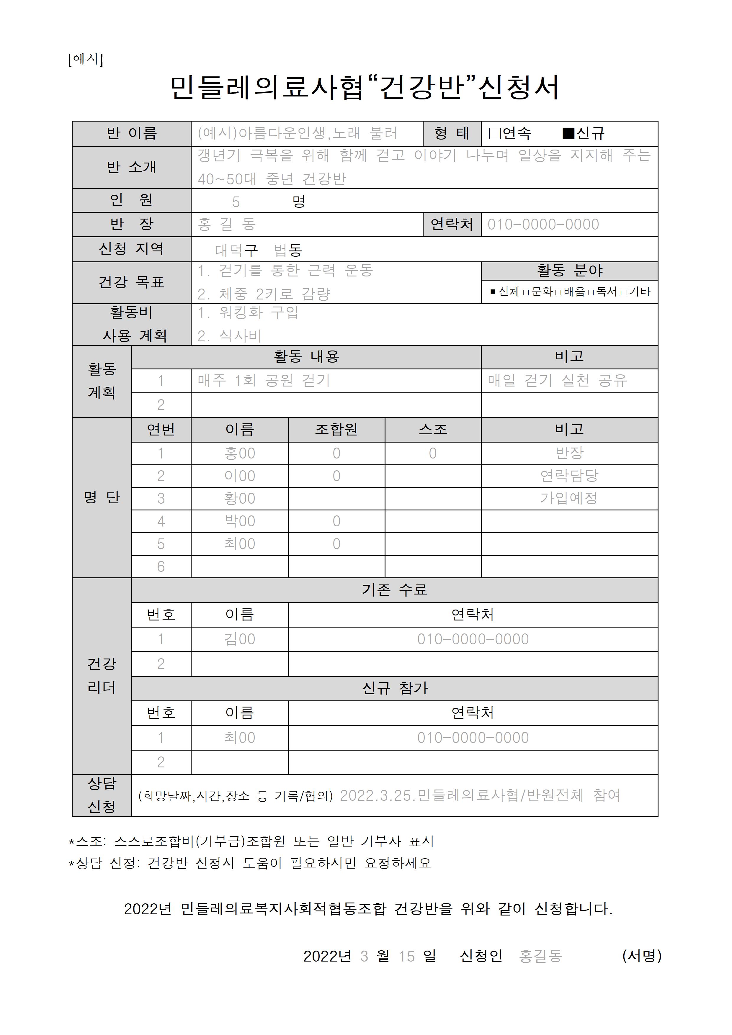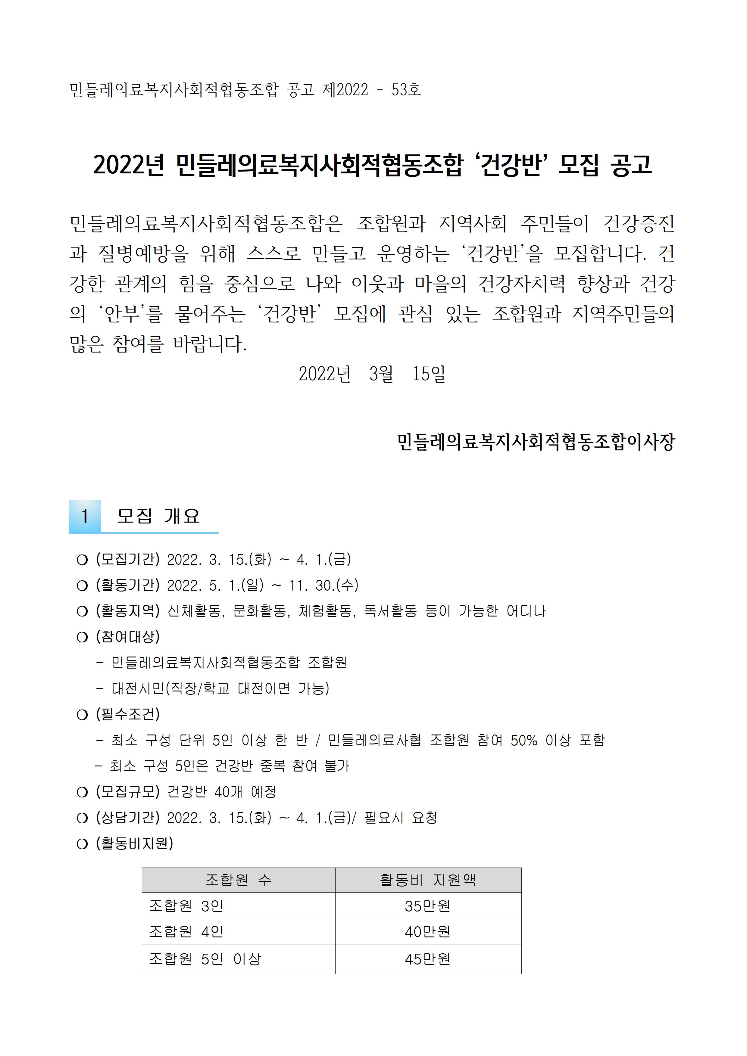2022년 민들레의료복지사회적협동조합 '건강반' 모집