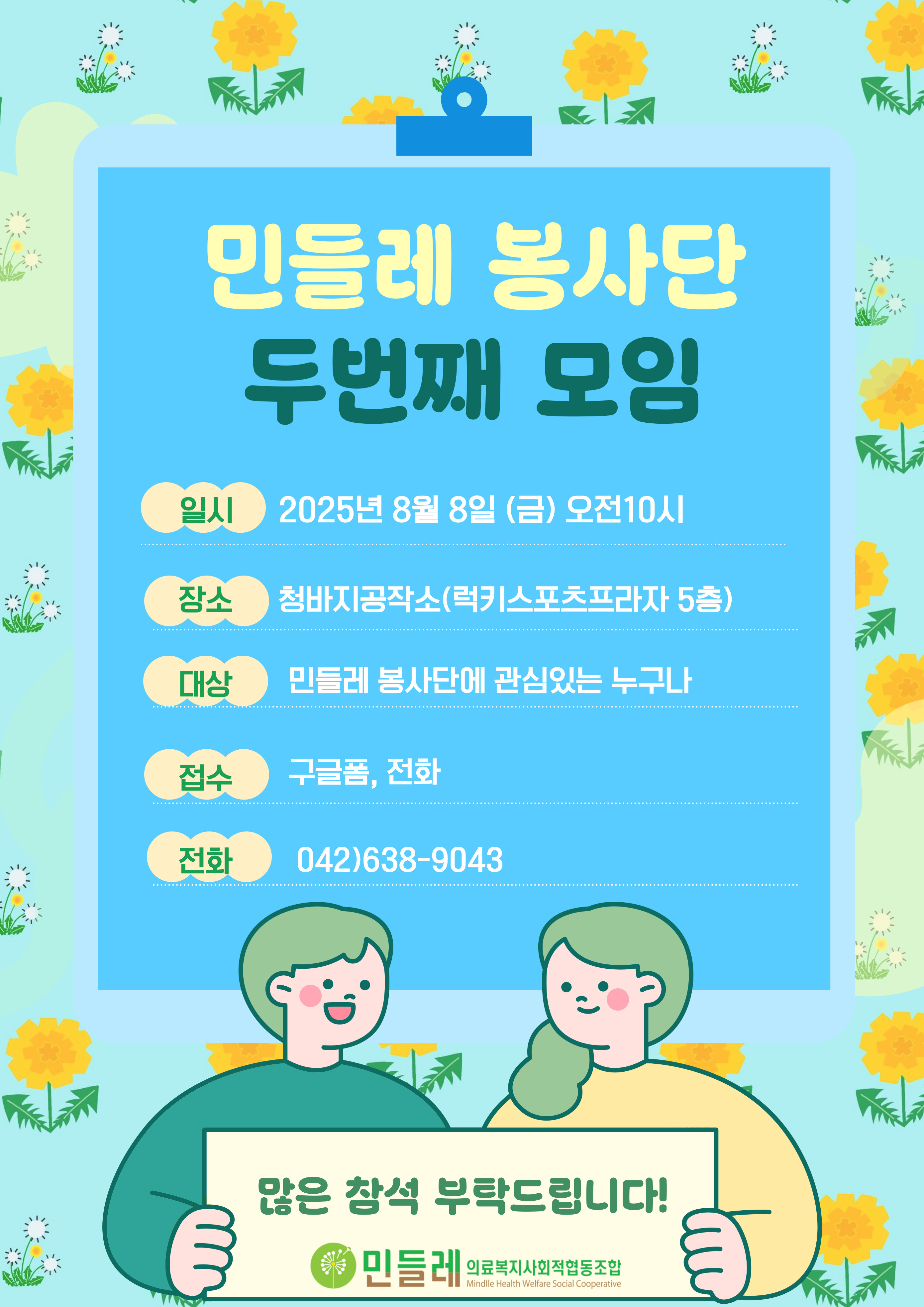 민들레봉사단 두번째 모임 안내