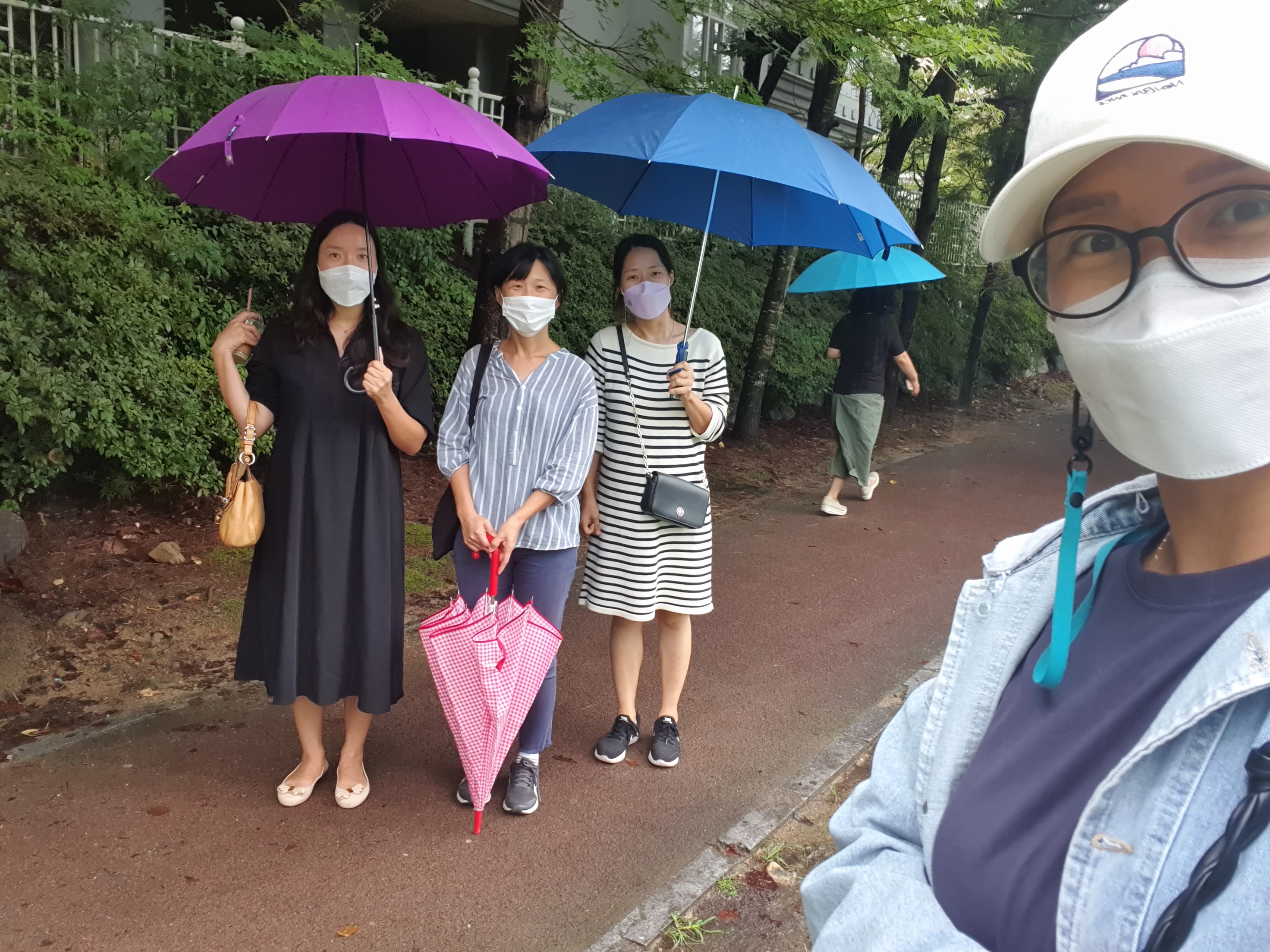 비오는 날 함께 우산쓰고 반석천을 걸으며 운치있는 산책을 함.