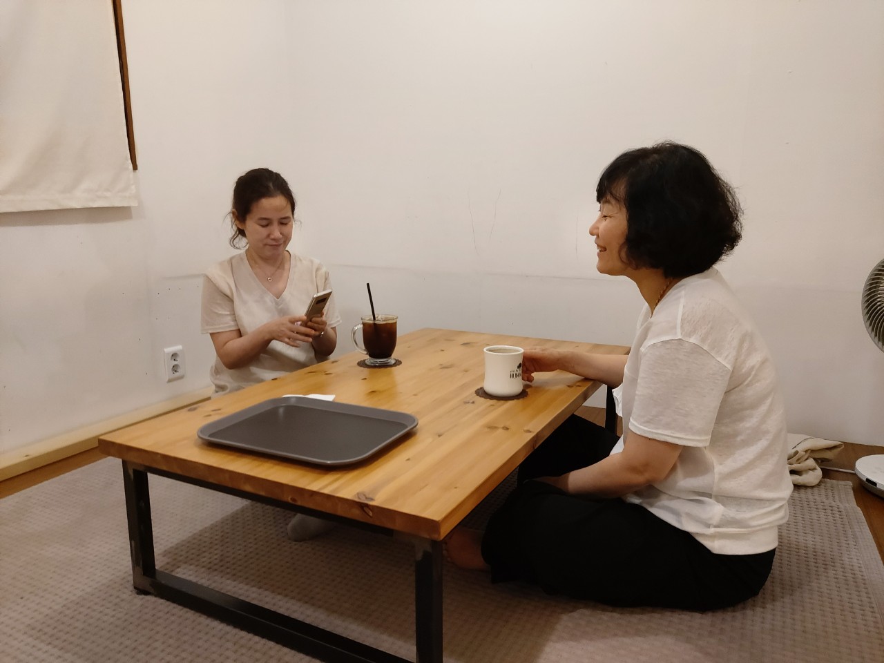 카페에 모여 맛있는 차도 마시고 재미있는 이야기도 도란도란...