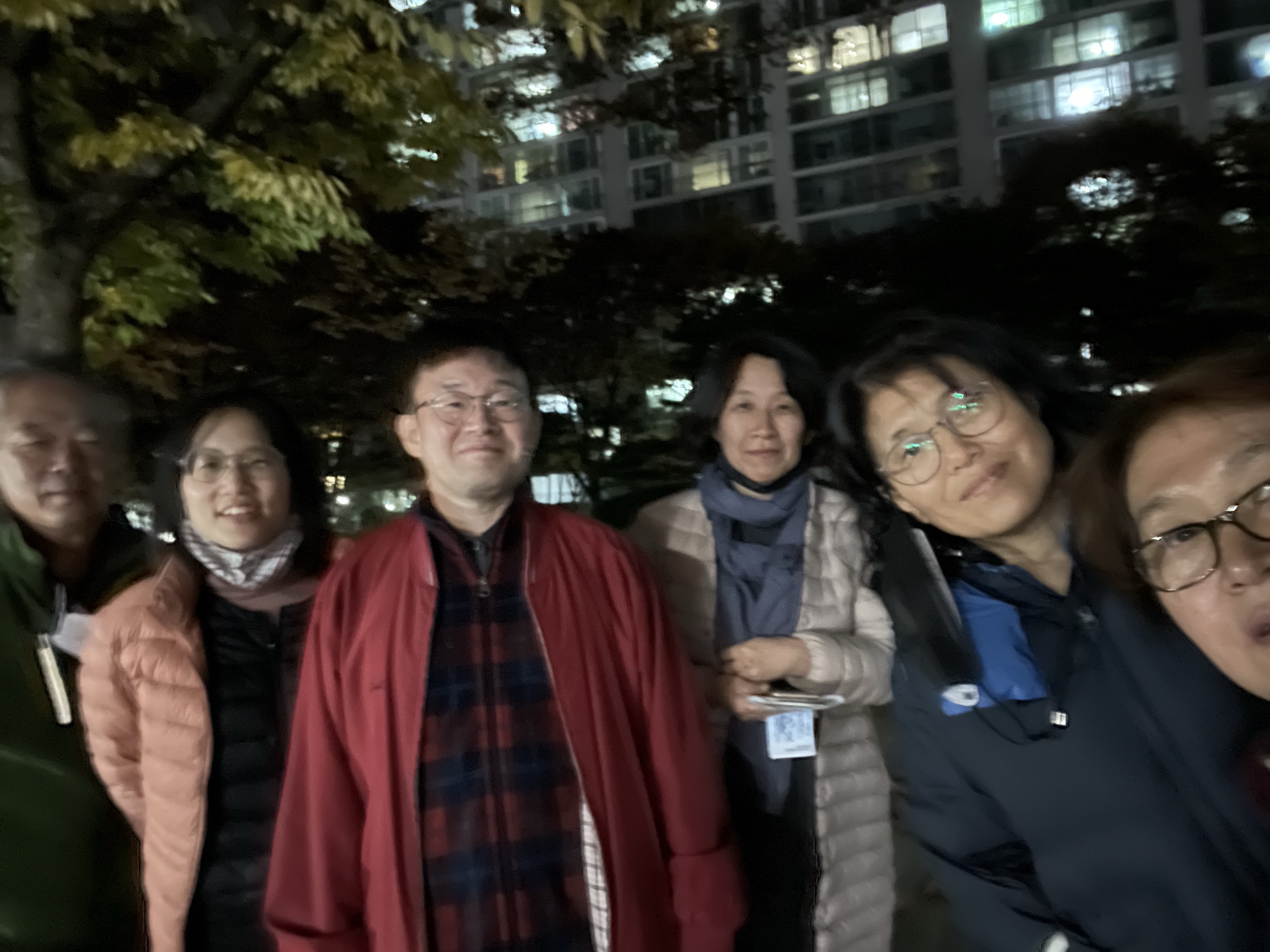 갑천 주변을 산책하고 음식을 먹으면 담소를 나눔