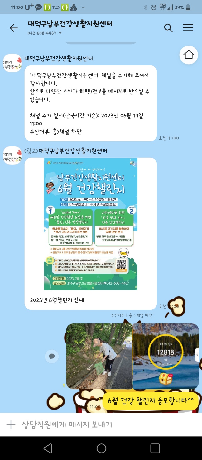 남부건강생활지원센터에서 진행하는 챌린지에 참여했습니다. 일만보걷기인증샷과 줍깅인증샷올리기 했습니다.