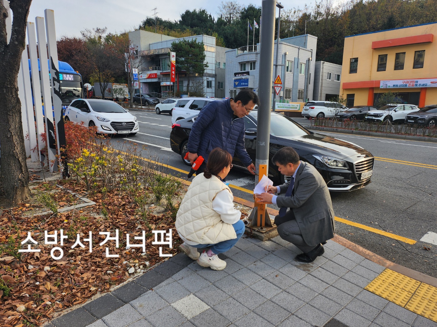 3년전에 주민자치사업으로 장수의자를 설치했는데 장수의자가 파손됐다는 민원에 송촌동일원에 설치된 장수의자 전면 전수조사를 함. 원래의 약속은 수요일에 하기로 했는데 갑자기 추워진다는 뉴스에 긴급히 모여 전수조사해서 보고 제출함.